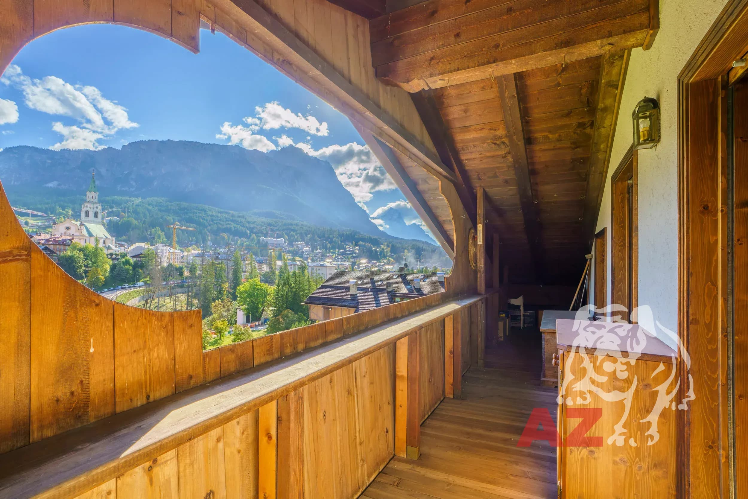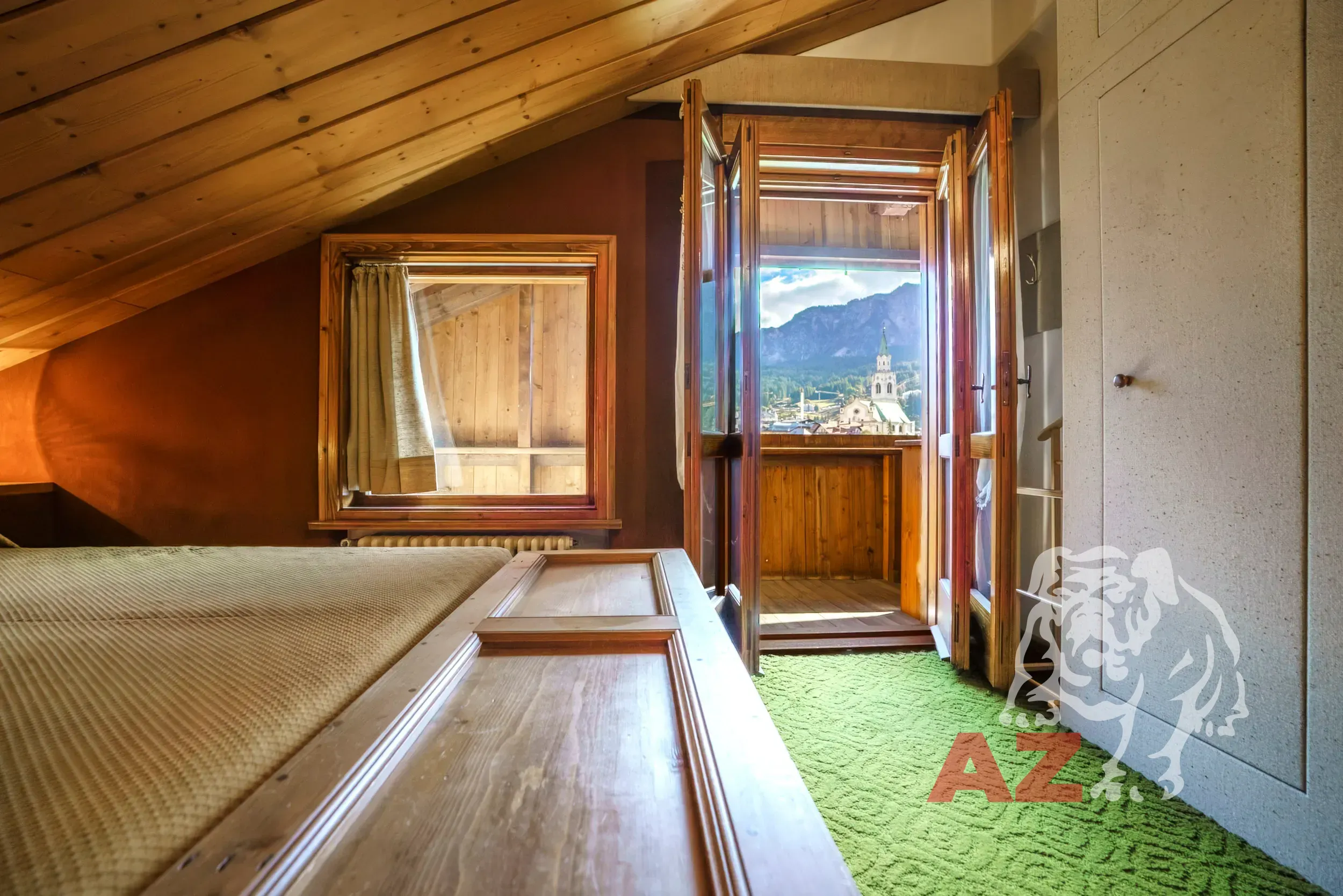 A pochi passi dal centro di Cortina, elegante mansarda al terzo piano con splendida vista su Pomagagnon e Faloria. Soggiorno con terrazzo, cucina separata, due camere, doppi servizi, cantina e posto auto in garage. Soluzione luminosa e tranquilla nel cuore delle Dolomiti.