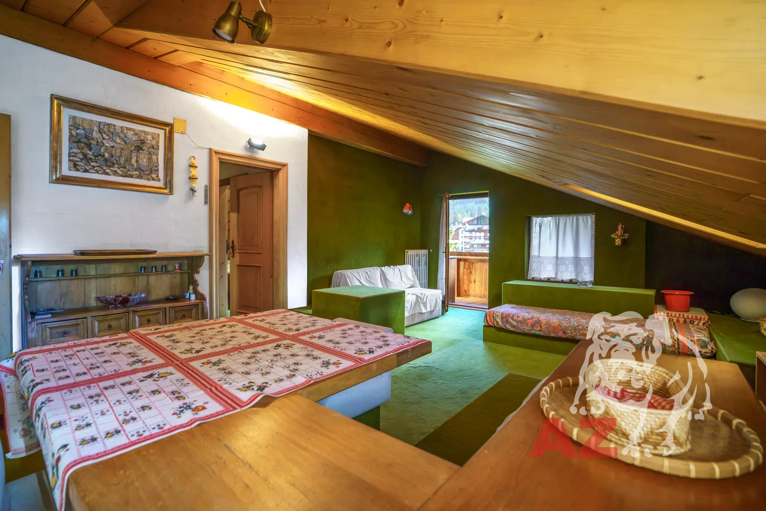 A completare la proposta vi sono una comoda cantina e un posto auto coperto in garage al piano interrato. La posizione strategica, a pochi minuti a piedi dal centro e da tutti i principali servizi, rende questa mansarda una soluzione ideale sia come dimora per le vacanze sia come investimento di pregio nel cuore delle Dolomiti.